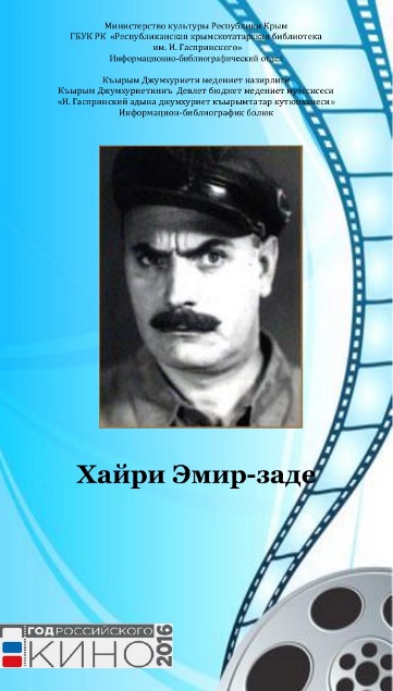 Информационно-библиографический отдел ГБУК РК «Республиканская крымскотатарская библиотека им. И. Гаспринского» представляет вашему вниманию информационный буклет, посвящённый известному крымскотатарскому актёру и знаменитому танцовщику Хайри Эмир-заде.