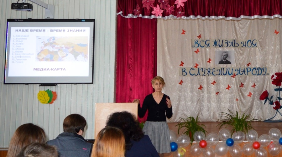 В продолжение мероприятия и. о. заведующей методическим отделом Республиканской крымскотатарской библиотеки имени Исмаила Гаспринского Гульнара Шосаидова презентовала медиакарту «Наше время – время знаний», посвященную местам, где жил и работал Исмаил Гаспринский. Это такие города, как Симферополь, Бахчисарай, Москва, Санкт-Петербург, Казань, Будапешт, а также страны: Франция, Индия, Египет, Турция. Ребята называли интересующий город или страну и получали ответ методиста, сопровождаемый фотослайдами.