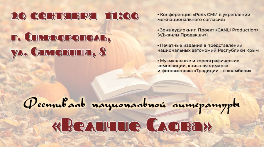 Ждём вас 20 сентября 2023 года с 11:00 до 14.30 часов в ГБУК РК «Республиканская крымскотатарская библиотека им. И. Гаспринского» по адресу: г.Симферополь, ул. Самокиша, д. 8.