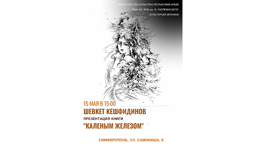 15 мая в 15:00 в Республиканской крымскотатарской библиотеке им. Исмаила Гаспринского будет представлена новая книга Шевкета Кешфидинова — «Каленым железом».