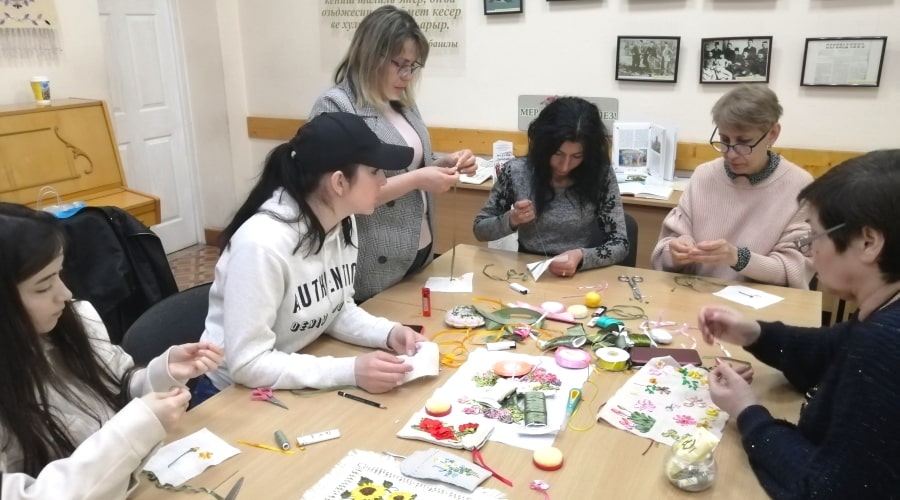 Мастер-класс по ленточному вышиванию провела Наталья Ивановна Красовская, член Регионального центра народных ремесел «Орьнек».