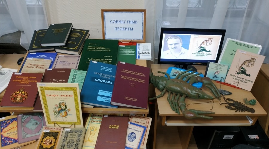 Экспозицию выставки «Совместные проекты» составили издания, подготовленные библиотечными специалистами совместно с партнерами в рамках межведомственного и межрегионального сотрудничества, в том числе репринтные и факсимильные издания довоенной литературы из редкого фонда библиотеки, выпущенные Медиацентром им. И. Гаспринского.