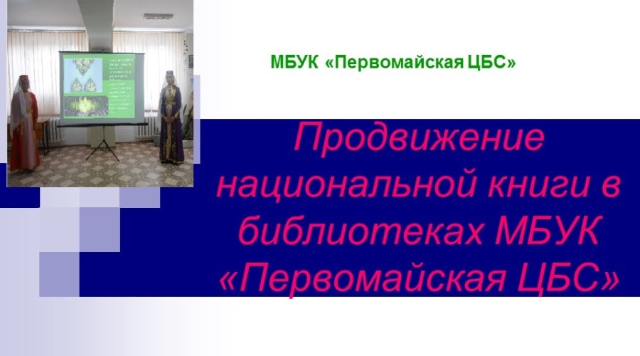 Об опыте работы по продвижению национальной книги библиотекарями Первомайской ЦБС, рассказала заведующая методико-библиографическим отделом районной библиотеки.