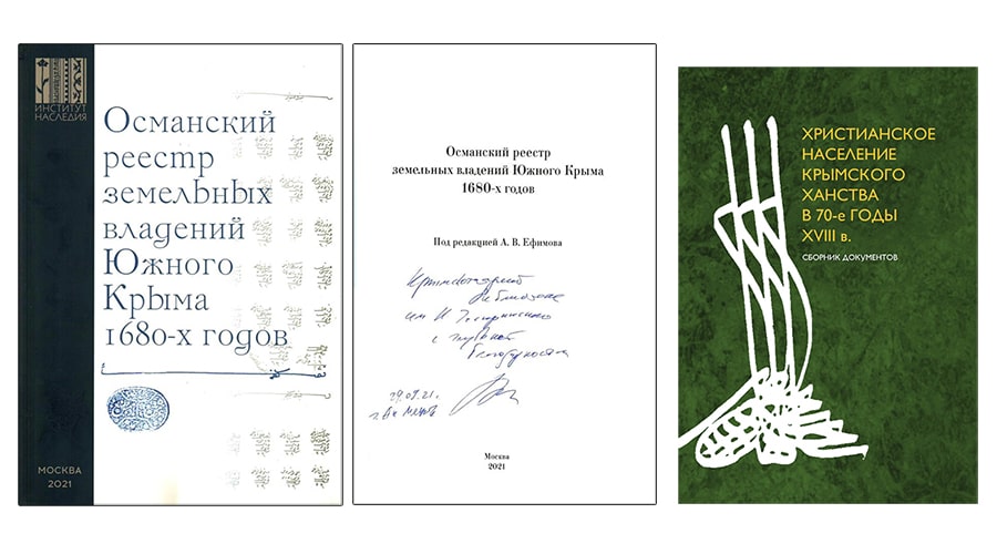 - Османский реестр земельных владений Южного Крыма 1680-х годов / под ред. А. В. Ефимова. – Москва : Институт Наследия, 2021. – 602 с.