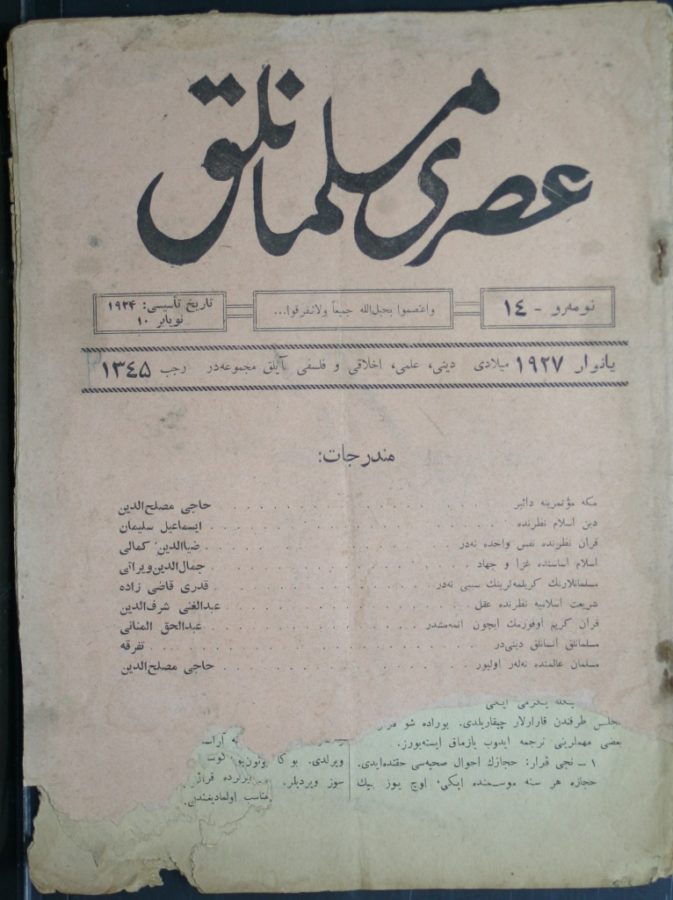 Сотрудники ГБУК РК «Республиканская крымскотатарская библиотека им. И. Гаспринского» выражают благодарность студенту КФУ Осману Бекирову за переданные в отдел редких книг и книжных памятников подшивку отдельных номеров приложений к газете «Терджиман» «Алем-и субьян» и «Алем-и нисван» за 1911 год и газету «Асрий мусульманлыкъ» (1924, № 14).