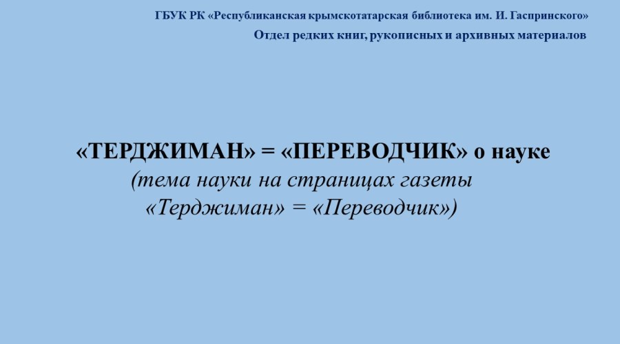 им. И. Гаспринского вниманию пользователей библиотеки предлагаем рубрику «Педагоги, образование и просвещение на страницах газеты «Терджиман» = «Переводчик».