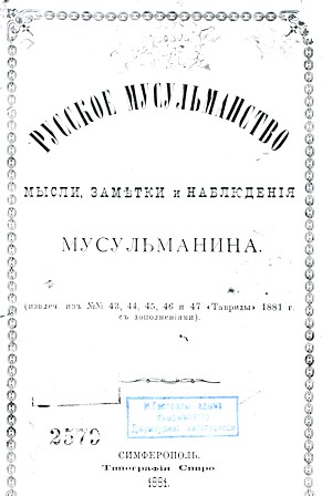 135 лет со времени издания (1881) книги: Гаспринский И. «Русское мусульманство: Мысли, заметки и наблюдения…
