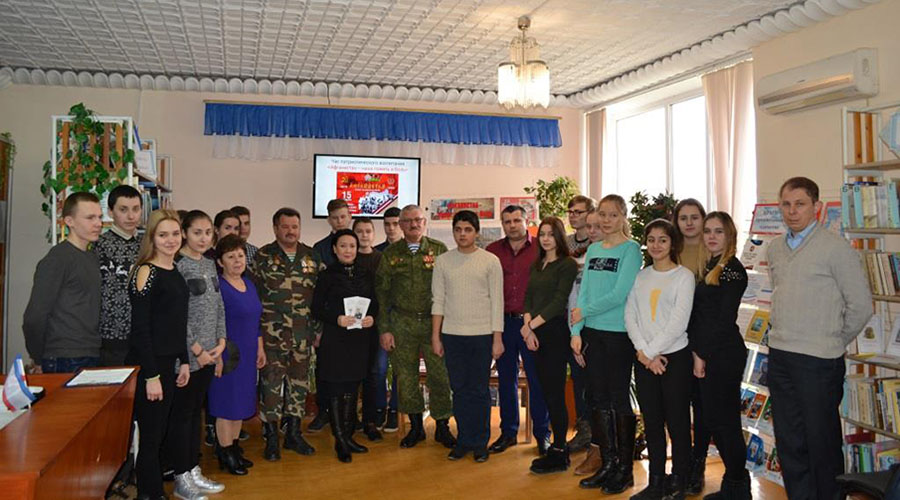 13 февраля 2018 года в отделе обслуживания Раздольненской центральной районной библиотеки им. А.И. Домбровского в рамках Государственной программы «Патриотическое воспитание граждан Российской Федерации на 2016 — 2020 годы» состоялся час патриотического воспитания «Афганистан – наша память и боль» для учащихся 10-х классов Раздольненской школы-лицея № 1 и читателей библиотеки.
