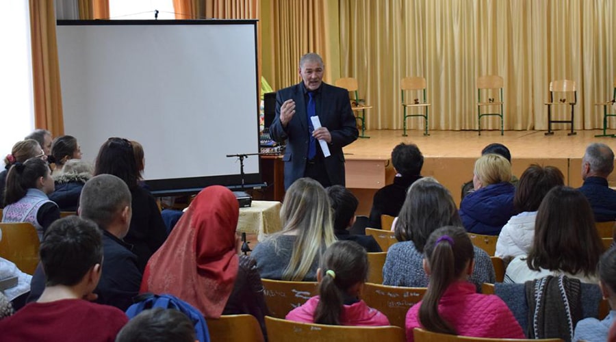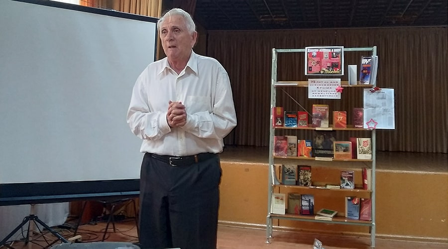 Вниманию преподавателей, а также учащихся средних и старших классов общеобразовательного учреждения была представлена насыщенная программа. Гость мероприятия – доктор исторических наук, профессор кафедры истории Крымского инженерно-педагогического университета Евгений Поляков – рассказал о Керченско-Феодосийской десантной операции, обороне Севастополя, а также других сражениях, которые проходили на полуострове в годы Великой Отечественной войны. Ученый представил вниманию аудитории свой авторский рассказ «Къуюджан» («Дух колодца»), посвященный послевоенному Крыму.
