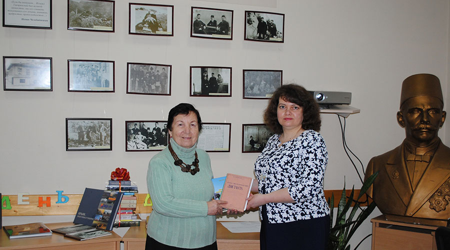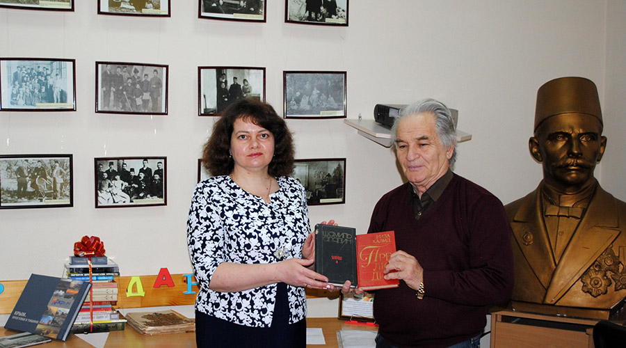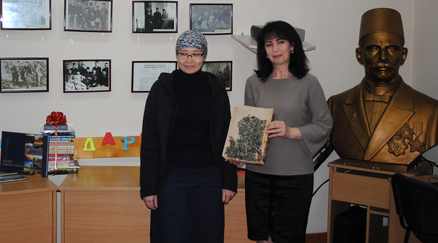Бейе Ильясовой, крымскотатарским писателем, были подарены книги, среди которых «Курсы систематического диктанта» 1900 года.
