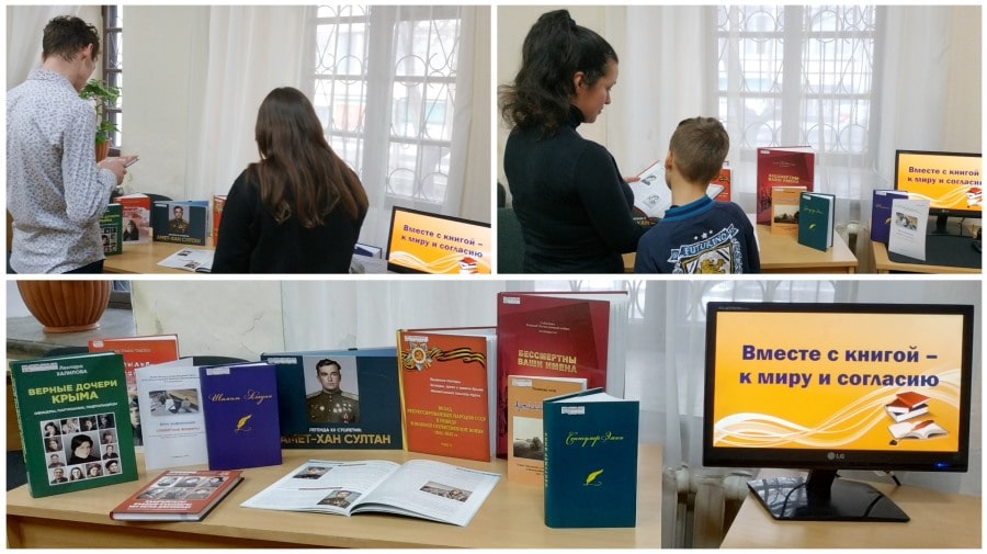 — выставка-обозрение «Вместе с книгой к миру и согласию», с тематической подборкой материалов и документов о Великой Отечественной войне, об участниках боевых действий многонационального Крыма;