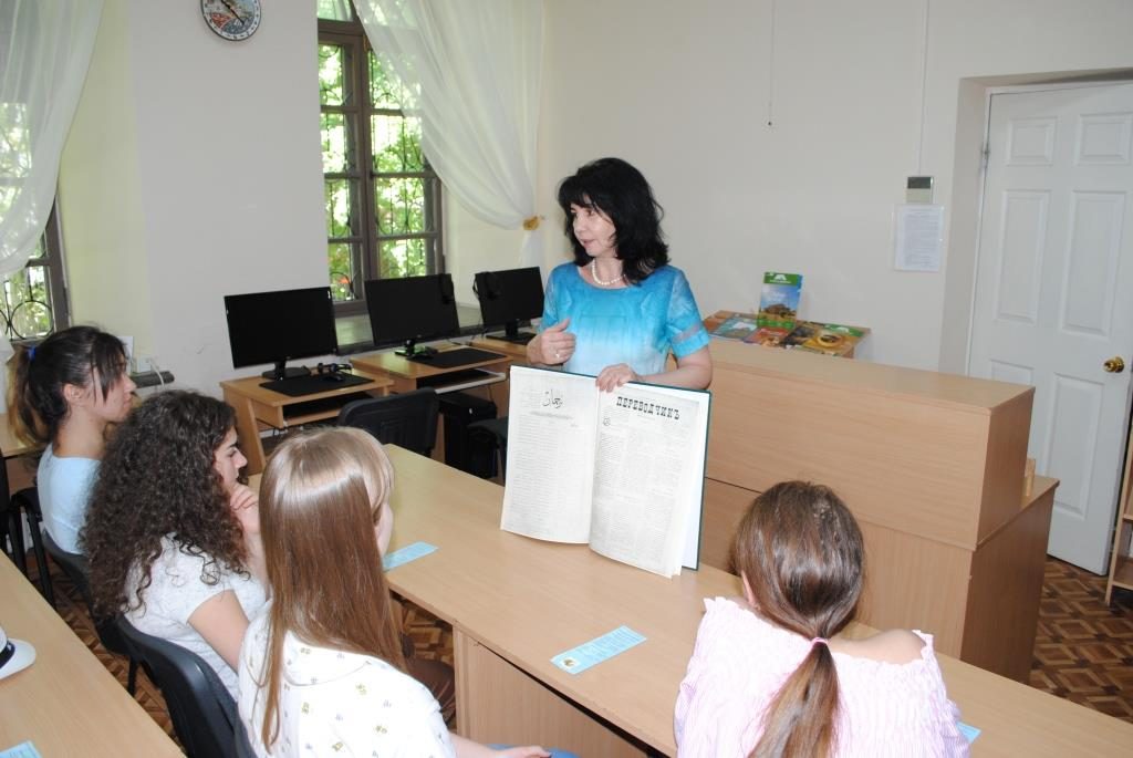 В читальном зале директор библиотеки Ягьяева Гульнара  провела экскурс в историю создания крымскотатарской библиотеки «Будем знакомы!».