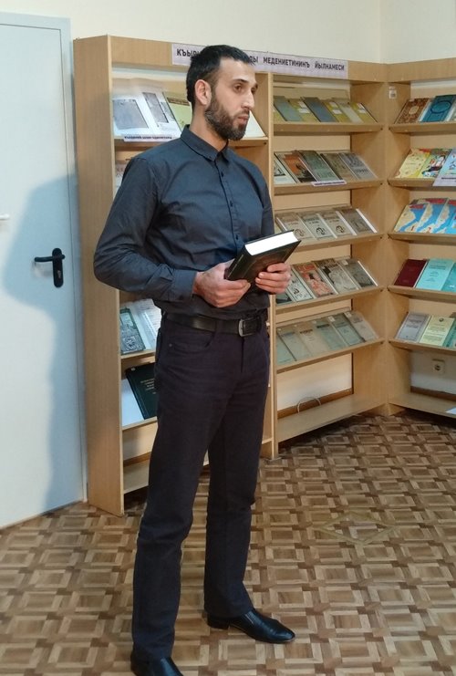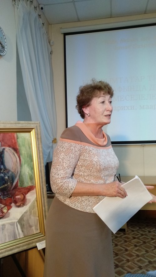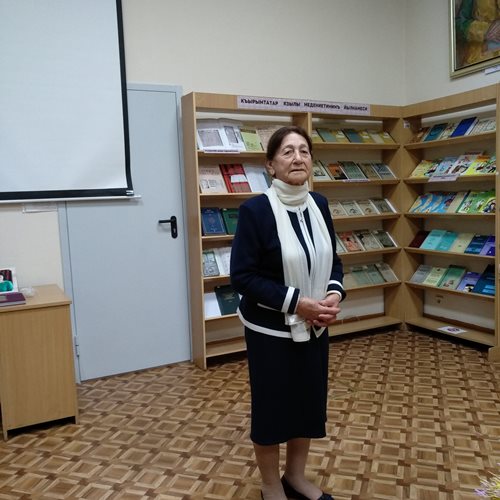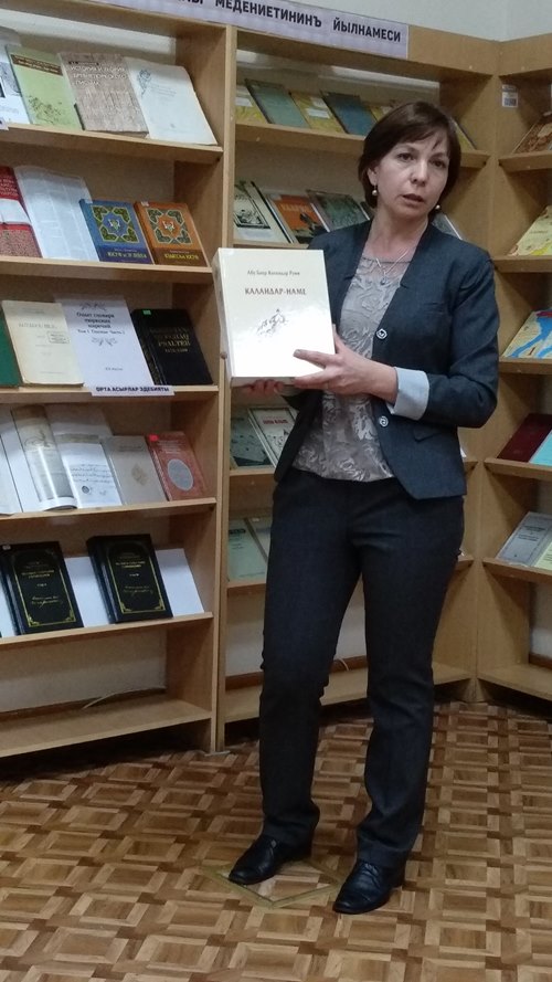 Ведущий библиотекарь отдела редких книг и книжных памятников Республиканской крымскотатарской библиотеки имени Исмаила Гаспринского Зарема Ислямова провела обзор книжной выставки «Къырымтатар язылы медениетининъ йылнамеси» («Летопись крымскотатарской письменной культуры»).