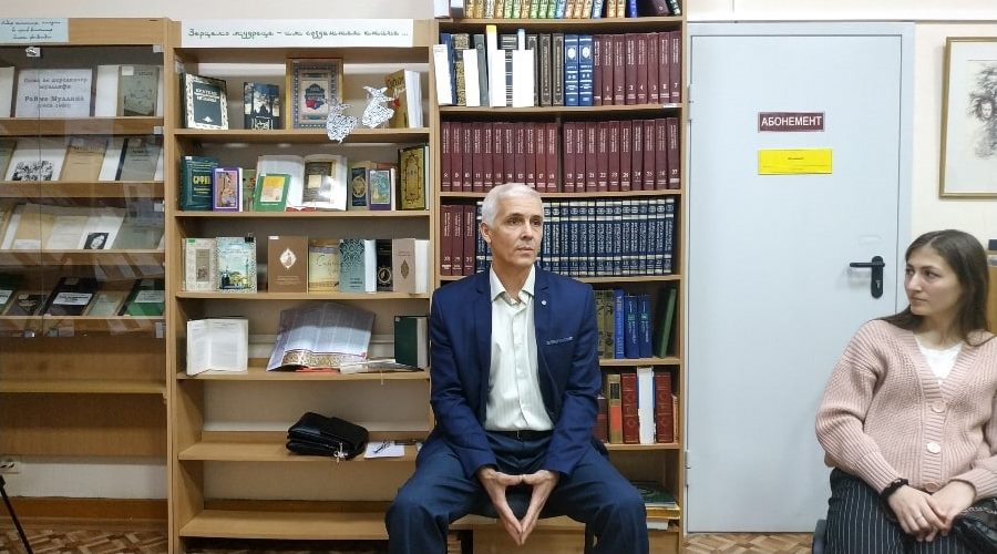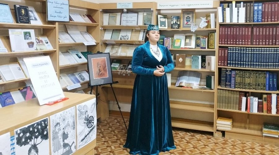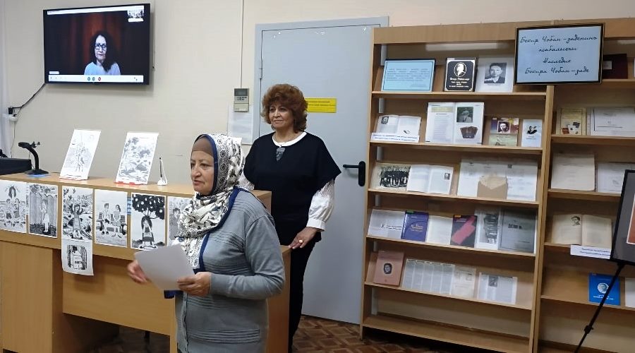 Также гостям и читателям библиотеки был представлен обзор литературы из фонда отдела редких книг, рукописных и архивных материалов «Педагог и автор учебников», посвящённый 115-летию со дня рождения языковеда, кандидата филологических наук Райме Муллиной.