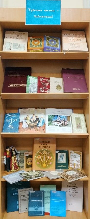 Специалистами библиотеки была подготовлена книжная выставка «Тувган тилим – байлыгым!» («Родной язык – моё богатство»), на который были представлены издания о древних памятниках письменности, народного художественного слова, декоративно-прикладного, музыкального искусства крымских татар.
