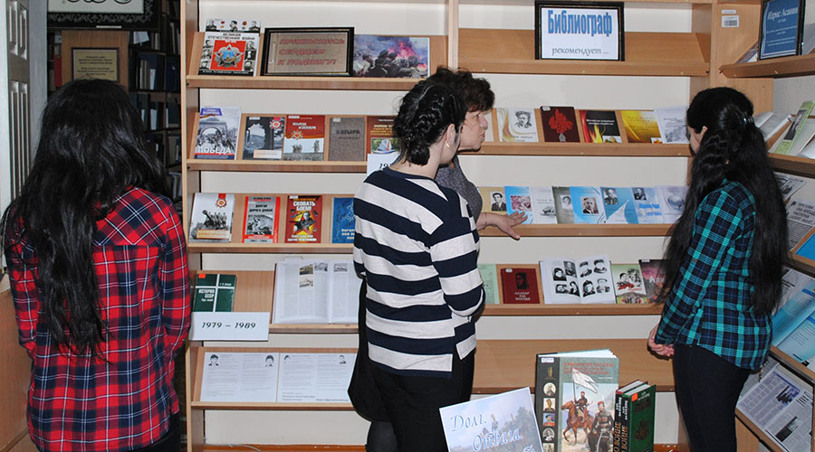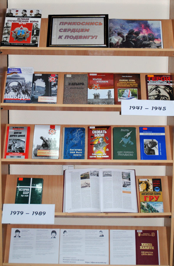 а также литература, посвященная войне в Афганистане с презентацией патриотического интернет-проекта «Мемориал воинов-афганцев «Черный тюльпан», и выставка одной книги «Долг. Отвага. Честь», посвященная военной службе крымских татар в Российской империи.