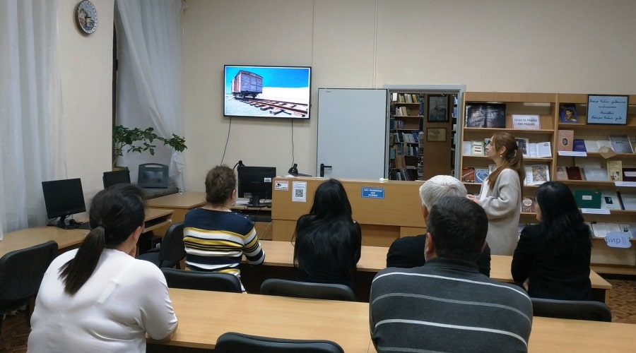 Специалистами библиотеки был проведен исторический экскурс по истории депортации в Крыму и по истории депортации крымских татар в частности. Видеофоном к мероприятию послужил ролик с демонстрацией мемориального комплекса «Путь возрождения народов Крыма» на станции «Сюрень» Бахчисарайского района, которое стало местом сбора людей для отправки в места выселения.