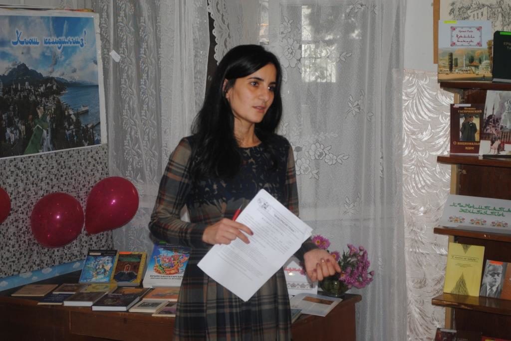 Ведущий библиограф Зарема Ислямова представила обзор литературы на тему: «Къырымтатар халкъынынъ дегерли хазинеси» («Бесценная сокровищница крымскотатарского народа»).