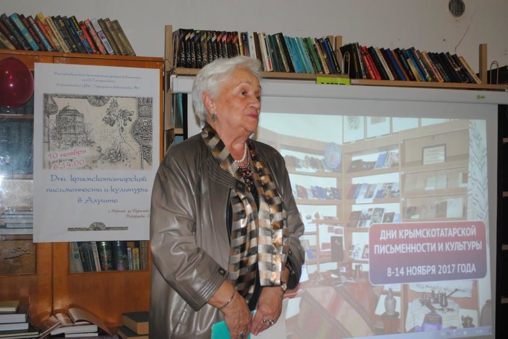 10 ноября 2017 года Республиканская крымскотатарская библиотека им. И. Гаспринского при поддержке Министерства культуры Республики и Алуштинской централизованной библиотечной системы в Городской библиотеке № 1 города Алушта провела выездное мероприятие в рамках Дней крымскотатарской письменности и культуры. В мероприятии приняли участие библиотечные и музейные работники, представители местных общественных организаций, пользователи библиотек и жители Алушты.