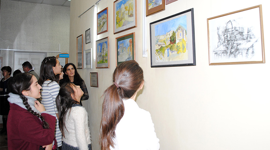 Гости библиотеки встретились с молодыми художниками, студентами Крымского инженерно-педагогического университета, которые презентовали выставку «Дворец в садах», посвященную столетию Бахчисарайского дворца.