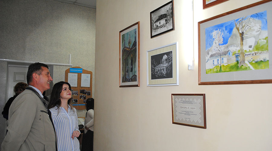 Эти работы представил Ирфан Нафиев, заслуженный художник Крыма, преподаватель кафедры изобразительного искусства Государственного бюджетного образовательного учреждения высшего образования «Крымский инженерно-педагогический университет». Специалисты библиотеки прокомментировали выставку-путешествие «Про100 лет», где рассказали о том, что связывает Бахчисарайский дворец и библиотеку.