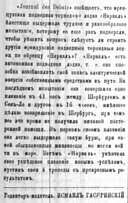 Листая "Терджиман" Новости Бектемиров Эльдар 12.11.2021 0 Комментарии Французская подводная торпедная лодка «Нарвалъ» Терджиман=Переводчик. — 1901. — 7 июня (№ 21). — С. 83