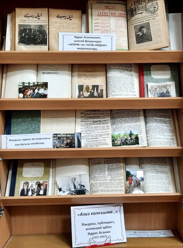 В читальном зале Республиканской крымскотатарской библиотеки Исмаила Гаспринского экспонируется выставка, организованная отделом редких книг, рукописных и архивных материалов. Это документы из архива Идриса Асанина: оригиналы довоенных периодических изданий на родном языке, документы, фотографии, рукописи и личные заметки литератора, которые были переданы в фонд согласно завещанию самого писателя.