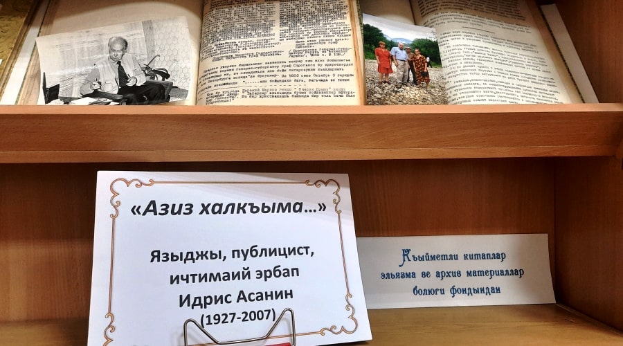 В читальном зале Республиканской крымскотатарской библиотеки Исмаила Гаспринского экспонируется выставка, организованная отделом редких книг, рукописных и архивных материалов. Это документы из архива Идриса Асанина: оригиналы довоенных периодических изданий на родном языке, документы, фотографии, рукописи и личные заметки литератора, которые были переданы в фонд согласно завещанию самого писателя.