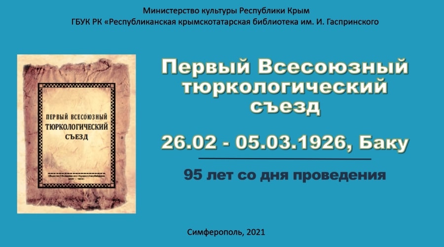 26 февраля 2020 года в Республиканской крымскотатарской библиотеке имени Исмаила Гаспринского при поддержке Министерства культуры Республики Крым был организован информ-обзор «Из истории филологии тюркских народов», приуроченный к 95-летию со дня проведения I Всесоюзного тюркологического съезда в Баку, проходившем с 26 февраля по 5 марта 1926 года.
