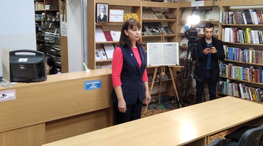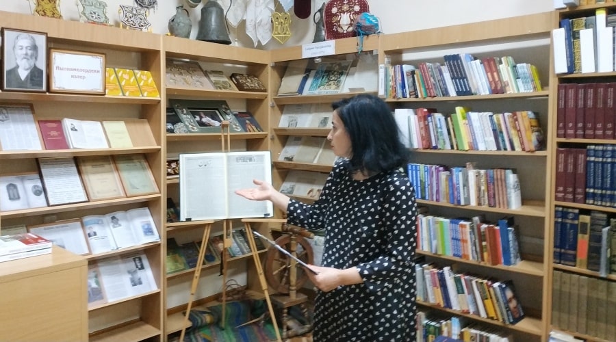 Заведующий отделом обслуживания пользователей Эльмаз Велиева презентовала выставку-ретроспективу «Йылнамелердеки излер» («Следы в летописях»).