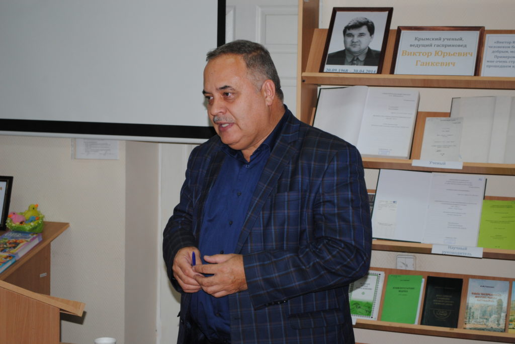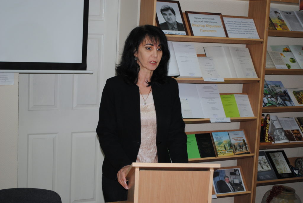 Заведующая отделом обслуживания пользователей Нурие Халилова представила книжную выставку «Крымский ученый, ведущий гасприновед Виктор Юрьевич Ганкевич».