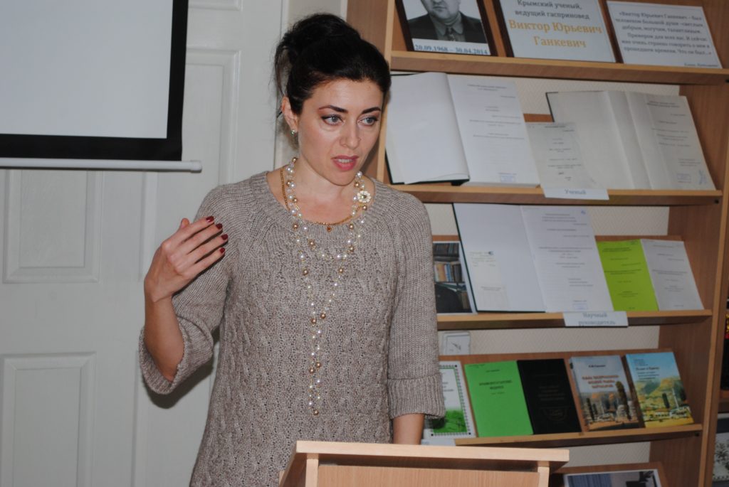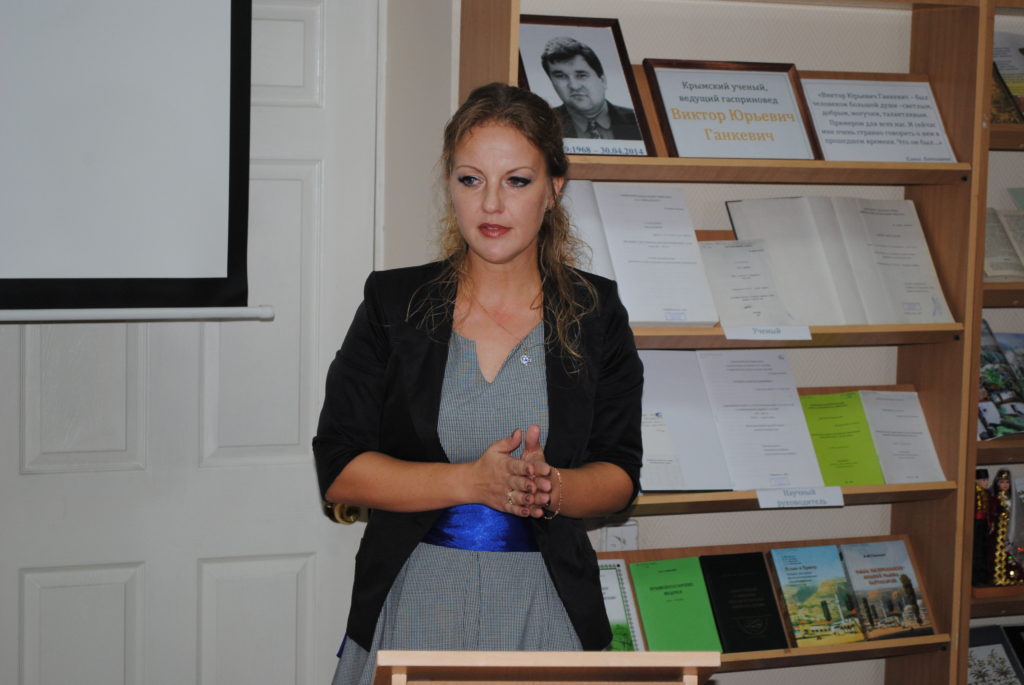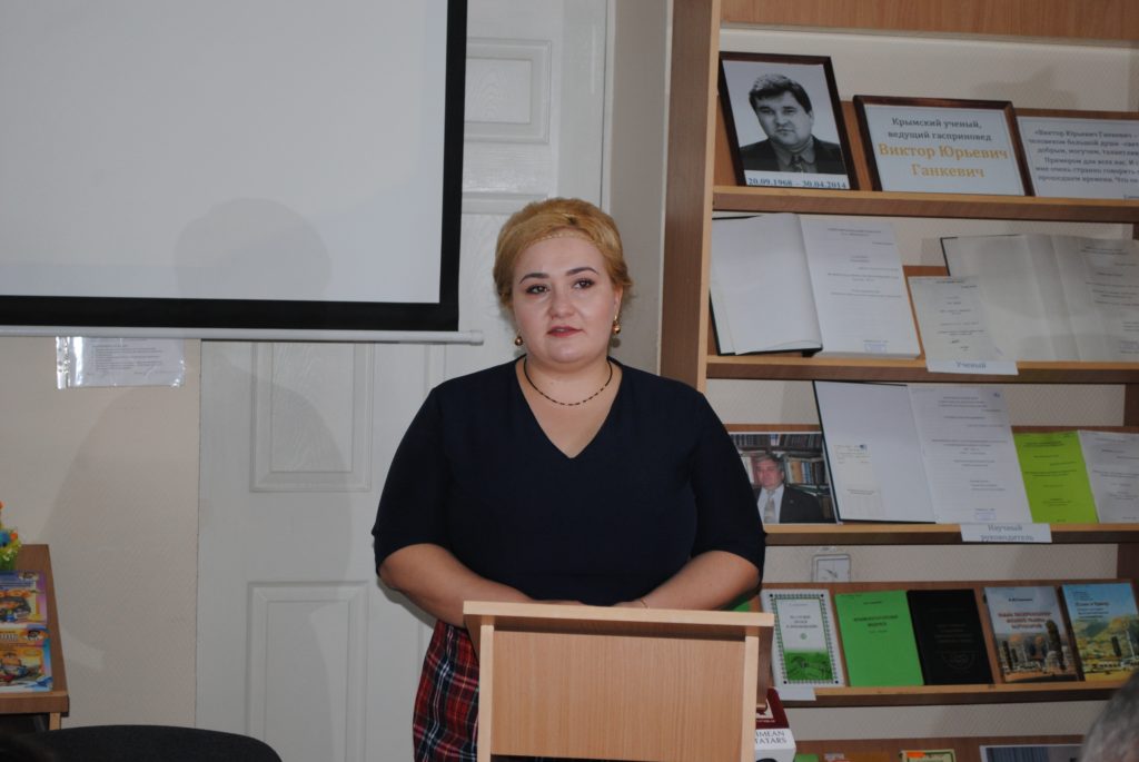 Далее, гости мероприятия услышали доклад младшего научного сотрудника Мемориального музея Исмаила Гаспринского Бахчисарайского историко-культурного и археологического музея-заповедника, младшего научного сотрудника Крымского научного центра института истории им. Ш. Марджани Академии наук Республики Татарстан Сельвины Сеитмеметовой «Значение трудов Виктора Ганкевича в изучении жизни и деятельности Исмаила Гаспринского».