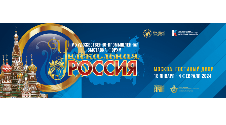 С 18 января по 4 февраля 2024 года в Комплексе Гостиного двора г. Москвы пройдет IV Художественно-промышленная выставка-форум «Уникальная Россия».