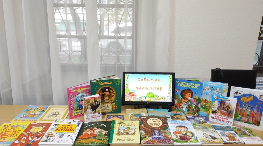 Специалистами библиотеки была организована книжная выставка с одноименным названием «Севимли масаллар» («Любимые сказки»). На выставке представлены сказки народов мира, а также авторские сказки имеющиеся в фондах библиотеки.