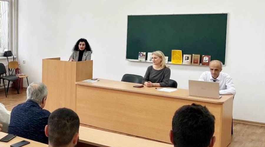 Специалист отдела обслуживания пользователей представила выступление на тему: «История народа в творчестве писателя», провела обзор литературы из фонда библиотеки, а также рассказала о мероприятиях в рамках библиотечной панорамы «Бекир Чобан-заденинъ сёзю» («Слово Бекира Чобан-заде»).