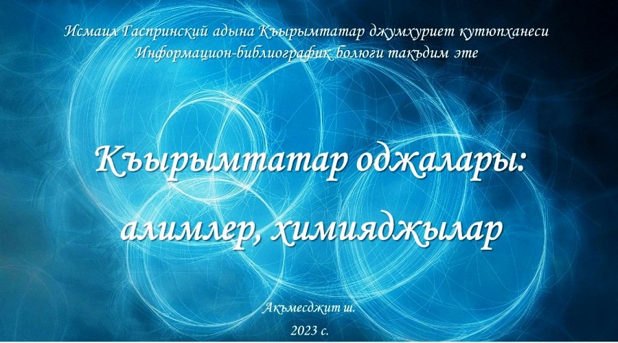 В рамках Года педагога и наставника информационно-библиографический отдел ГБУК РК «РКБ им. И. Гаспринского», при поддержке Министерства культуры Республики Крым, подготовил виртуальный обзор-презентацию «Къырымтатар оджалары: алимлер, химияджылар» («Крымскотатарские педагоги: учёные, химики»)