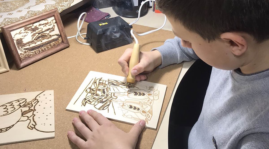 и даже выжиганием по дереву (Руслан Сейманов).