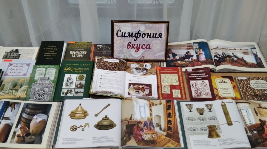 Специалисты также провели обзор у книжной выставки «Симфония вкуса», организованной на основе фонда библиотеки. Из сочинения историка Халим Гирай Султана «Розовый куст ханов, или история Крыма» («Гюльбюн-и ханан, яхут Къырым тарихи») гости узнали о том, как проходили трапезы при дворце Крымских ханов; услышали воспоминания на гастрономическую тему ученого-баллистика Рефата Аппазова из его книги «Следы в сердце и в памяти»; познакомились со сборниками певицы Сабрие Эреджеповой и др. авторов.