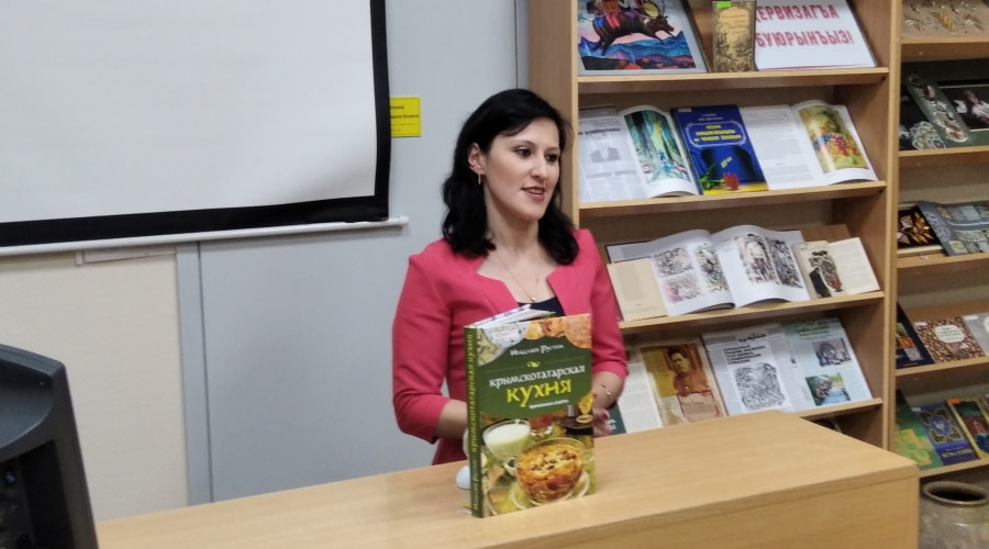 Заместитель директора по редакционно-издательской деятельности Медиацентра имени Исмаила Гаспринского Адиле Ибрагимова и начальник издательского отдела Андрей Веселов презентовали книгу Рустема Ибадлаева «Крымскотатарская кухня», которая увидела свет в 2019 году и пользуется большим спросом у читателей.