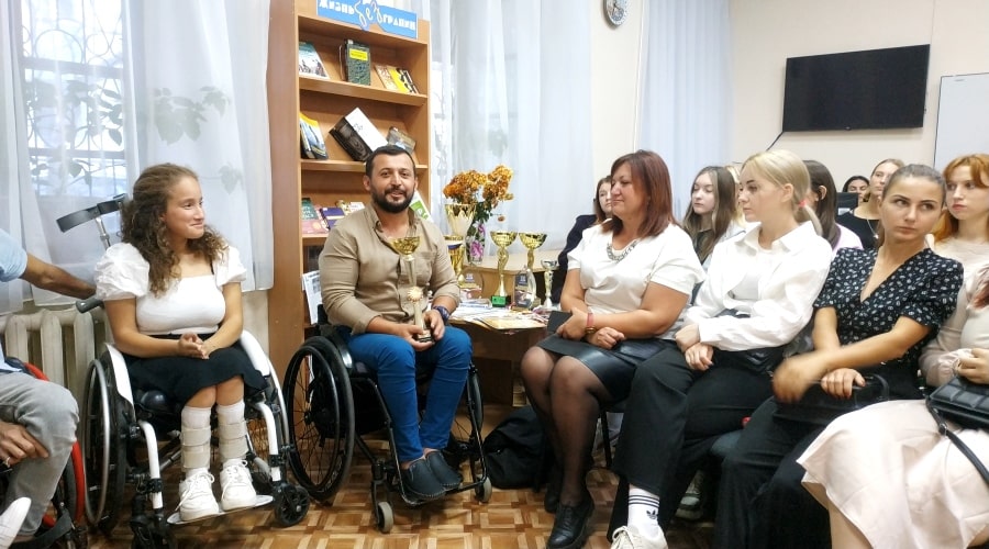 по инициативе нашей библиотеки для студентов Крымского колледжа общественного питания и торговли провели кандидаты в мастера спорта по теннису на колясках Сурен Эреджепов, Али Кадралиев и Мария Щербакова, а также призеры и разрядники чемпионата по спорт ЛИН (лиц с интеллектуальными нарушениями) России.