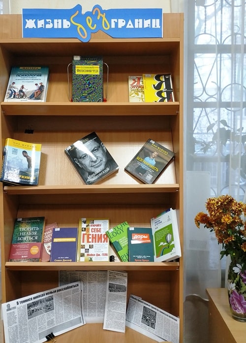 Кубки и награды, публикации о турнирах и чемпионатах с участием спортсменов-колясочников в различных изданиях из фондов библиотеки, а также книги, мотивирующие к развитию своего внутреннего потенциала, стали наглядным подтверждением безграничности человеческих возможностей.