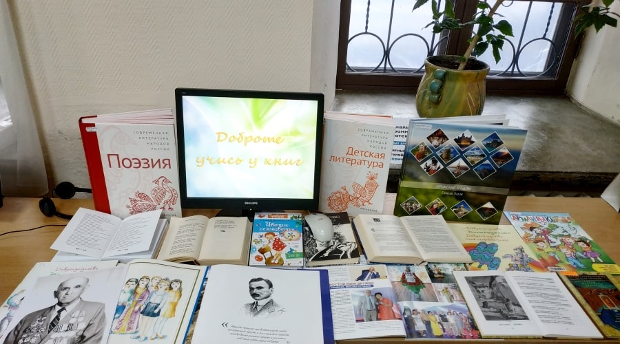 В рамках мероприятия сотрудниками отдела обслуживания пользователей организована книжно-документальная выставка «Доброте учись у книг». На выставке представлены книги и журналы из фондов библиотеки: художественные произведения и стихотворения, пословицы и поговорки, статьи и другие документы на данную тематику.