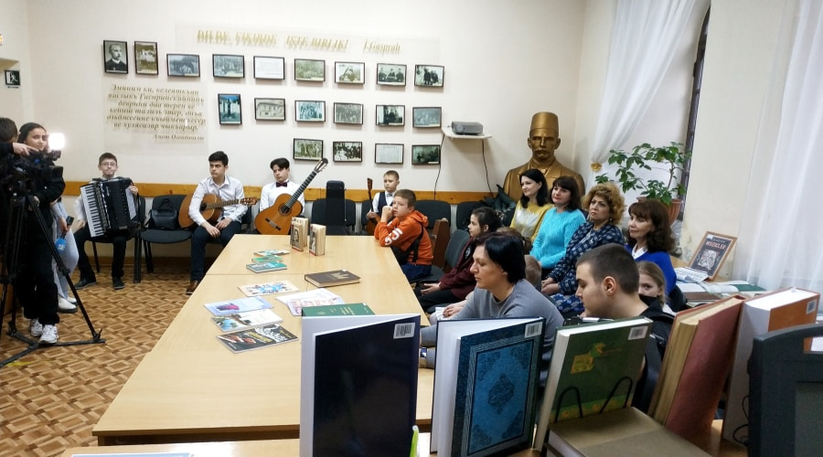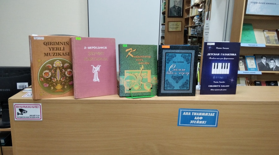 В литературной части программы сотрудник отдела обслуживания пользователей провела презентацию тематической литературы. Дети наряду с книгами об Иоганне Себастьяне Бахе, Никколо Паганини, Джузеппе Верди познакомились с изданиями по творчеству отечественных классиков: Сергея Рахманинова, Александра Спендиарова, крымского автора Алемдара Караманова, а также крымскотатарских композиторов: Ягья Шерфединова, Ильяса Бахшыша и др.