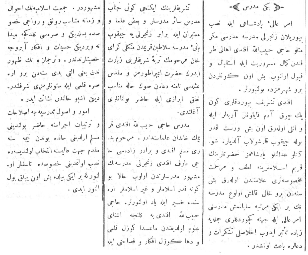 [Гаспринский, Исмаил]. Енъи мудеррис / [Гаспринский, Исмаил]. – Текст непосредственный // Терджиман. –1890. – Февр. 9. (№ 5). – С. 1.