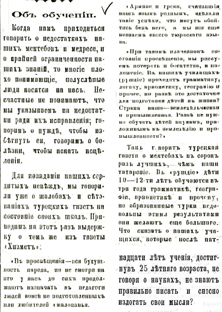 Илим ве маариф — Текст : непосредственный // Терджиман. – 1890 – Март 18 (№ 10). – С. 2.