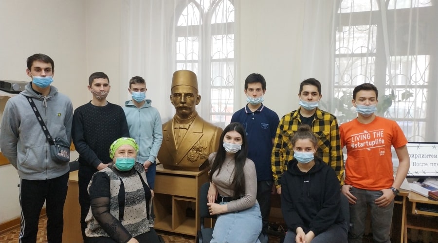 В завершение мероприятия по просьбе гостей из Симферопольского техникума железнодорожного транспорта и промышленности сотрудники библиотеки провели творческую экскурсию, в ходе которой познакомили студентов с материалами о жизни и творческом наследии Исмаила Гаспринского.
