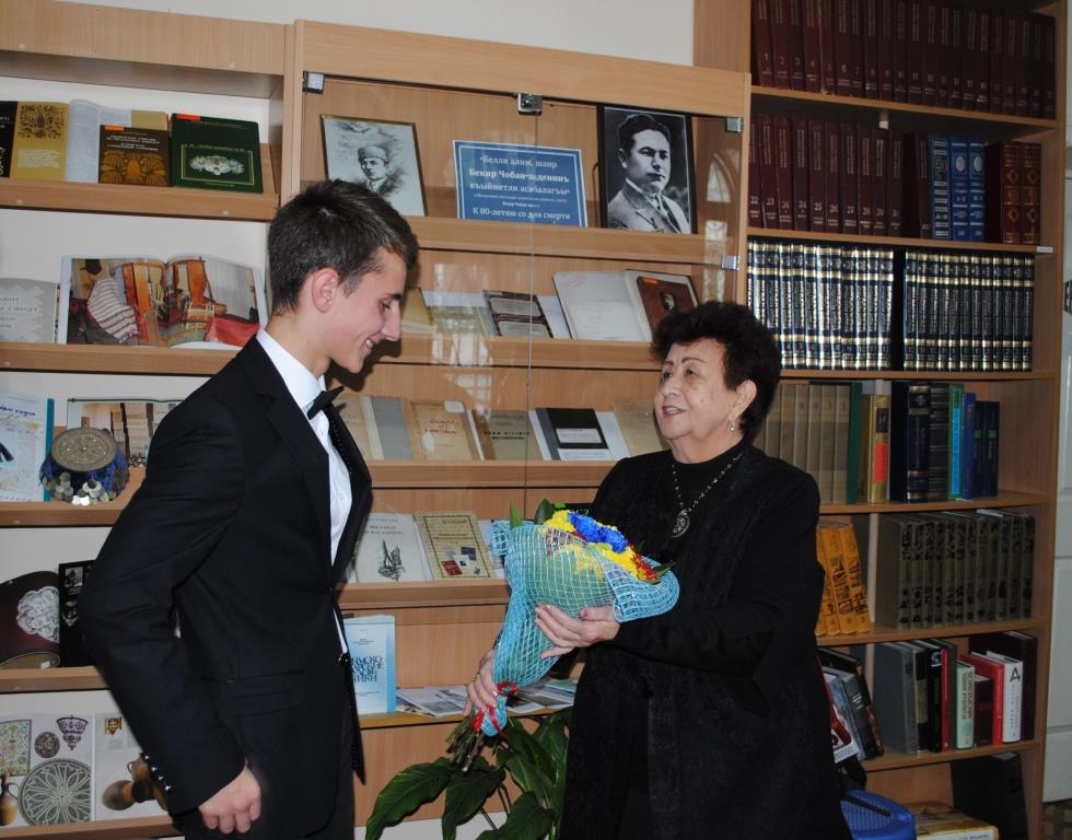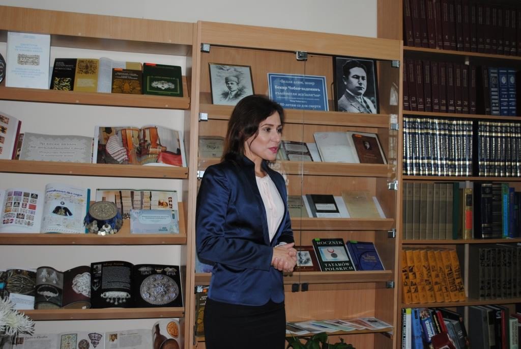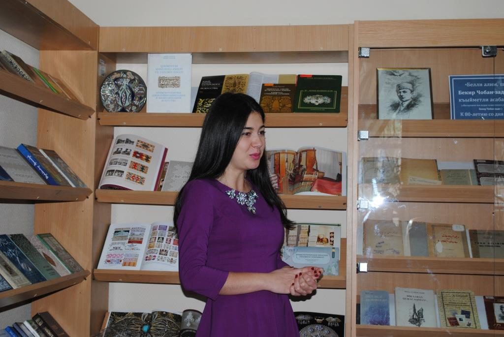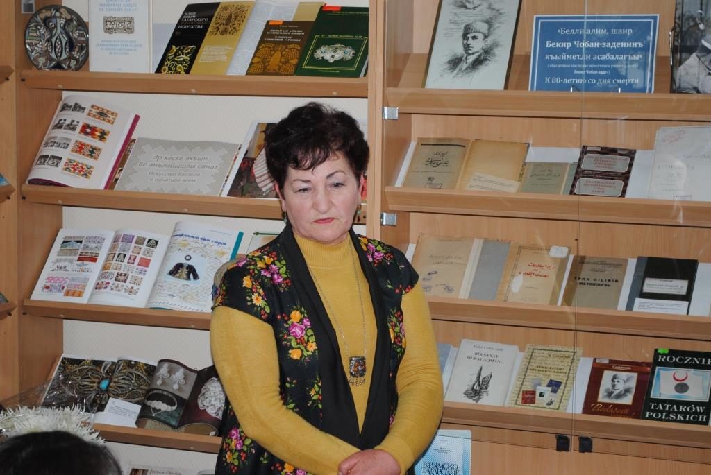 Сотрудниками библиотеки была организована книжная выставка «Къырымтатар халкъынынъ дегерли хазинеси» («Бесценная сокровищница крымскотатарского народа»), обзор которой провела ведущий библиограф Зарема Ислямова.