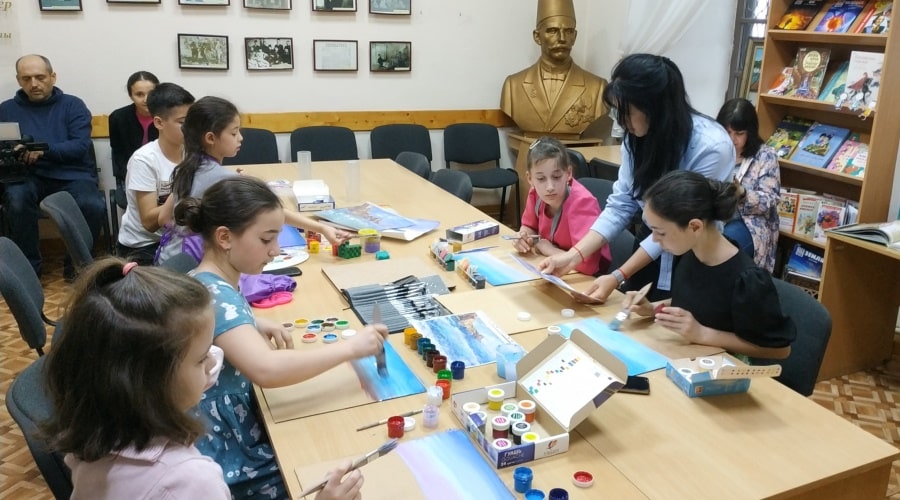 В этот день художница Лемара Амзаева провела для юных читателей мастер-класс, во время которого дети учились создавать морские пейзажи, правильно подбирая цветовые оттенки.