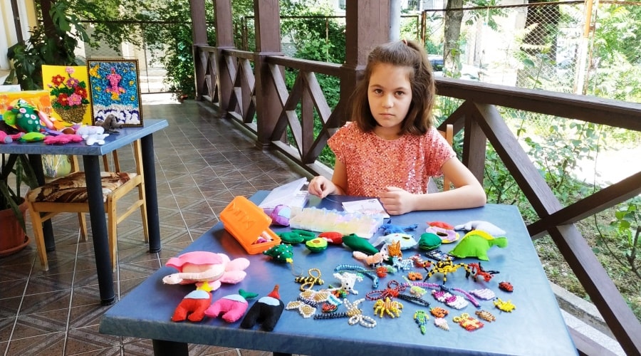 Одна из участников летней площадки – симферопольская школьница Сафие Идрисова – вот уже несколько лет делает поделки из бисера, игрушки из фетра, фигурки оригами и многое другое.