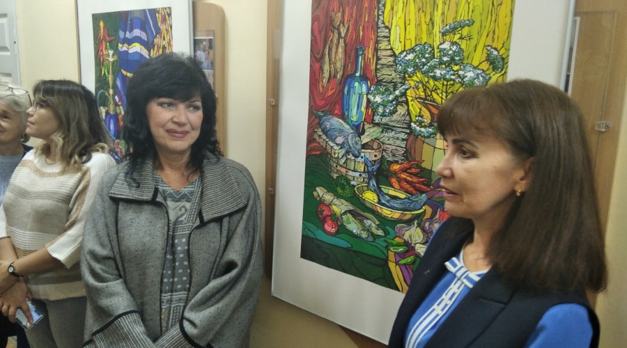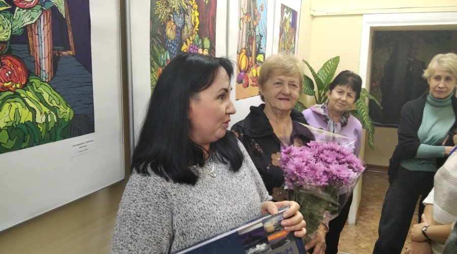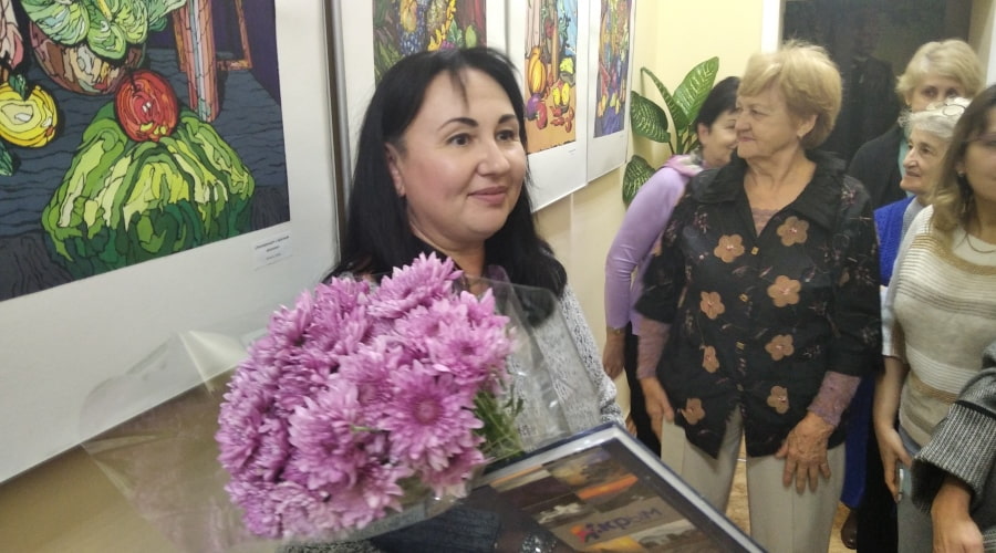 Светлана Карлова рассказала о том, что «Мир красок» – первый шаг в ее творческом пути, и поблагодарила коллектив библиотеки за организацию выставки.
